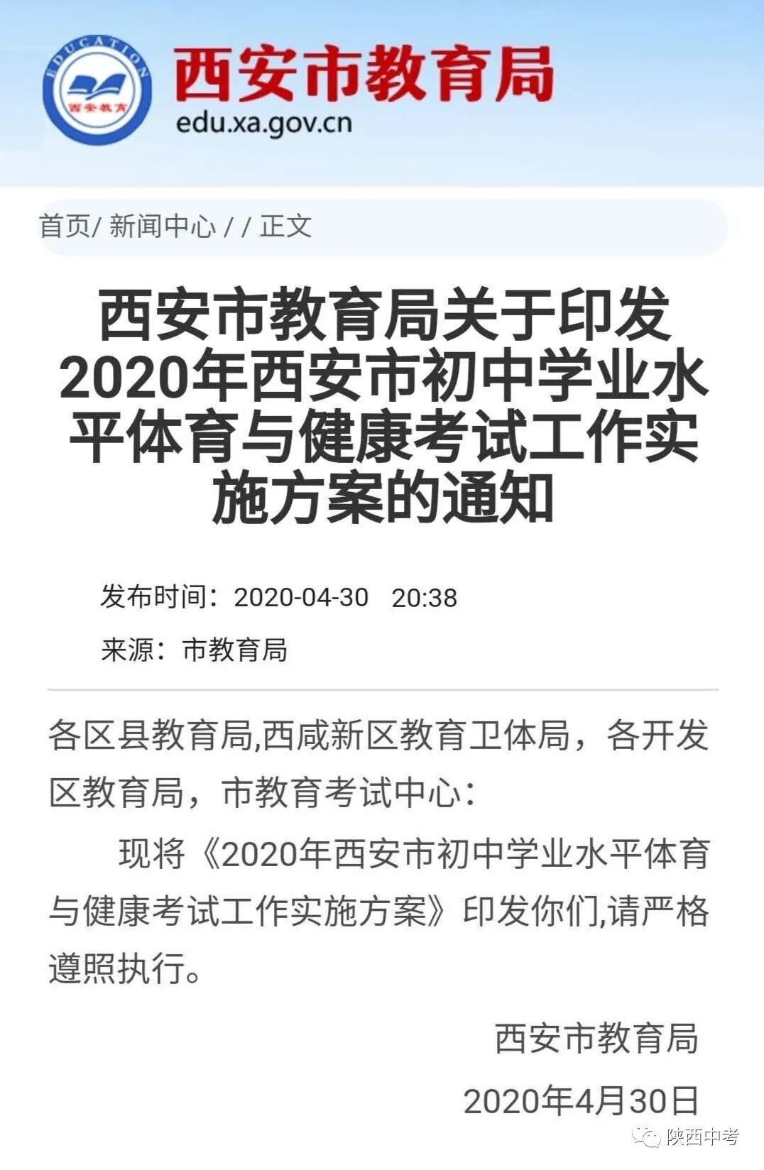 2020年西安市初中學(xué)業(yè)水平體育與健康考試工作實(shí)施方案