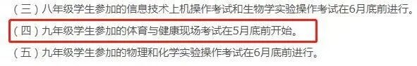根據(jù)官方政策:九年級(jí)學(xué)生參加的體育與健康現(xiàn)場(chǎng)考試在5月底前開(kāi)始。