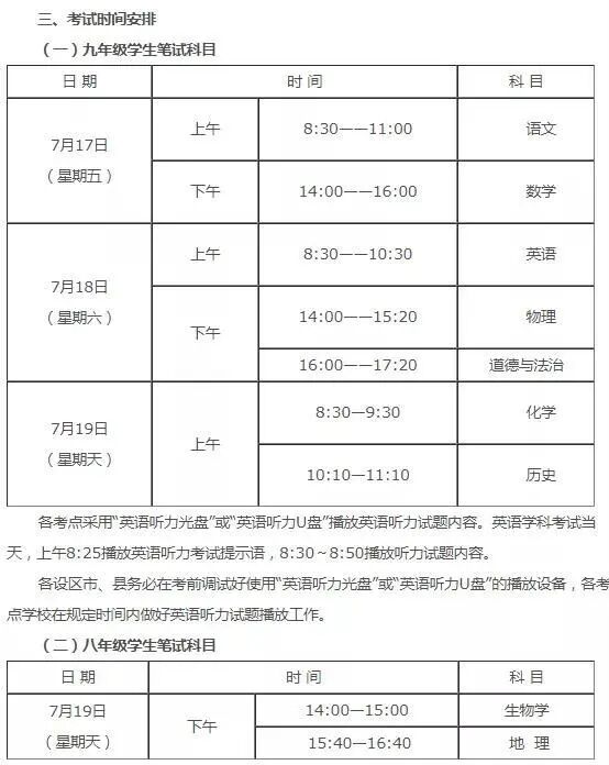 今年,初二初三學(xué)生的筆試科目安排如下:
