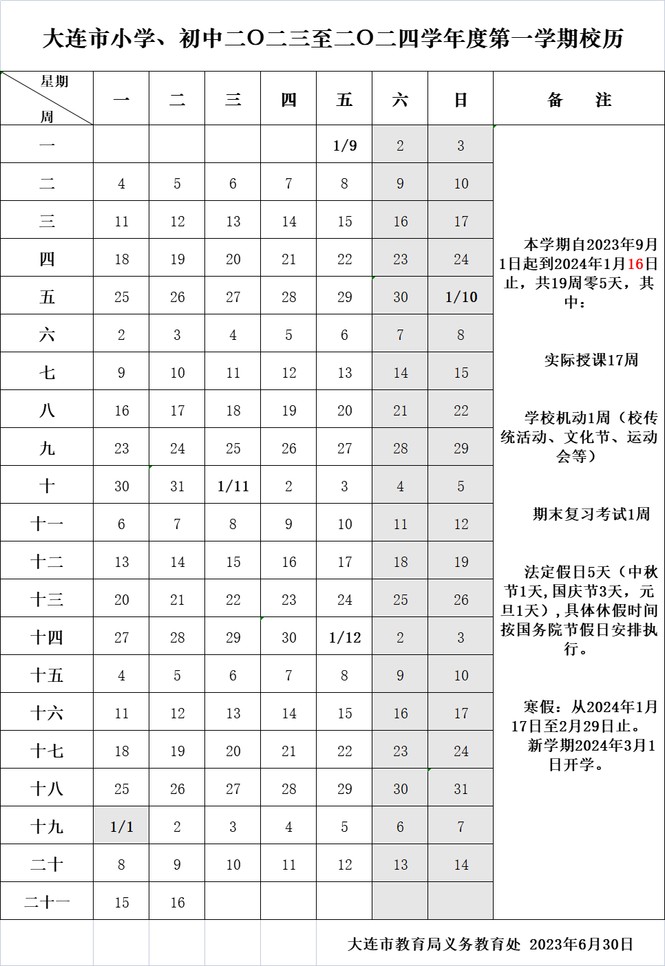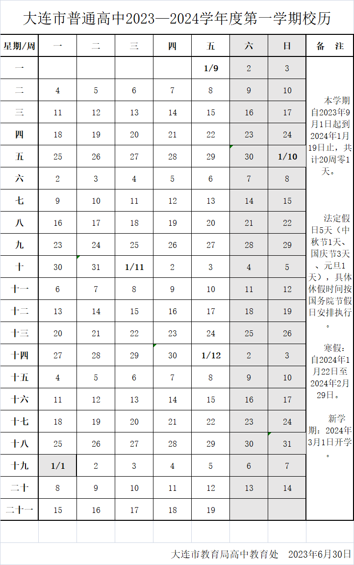 大連市2024年中小學(xué)寒假時間