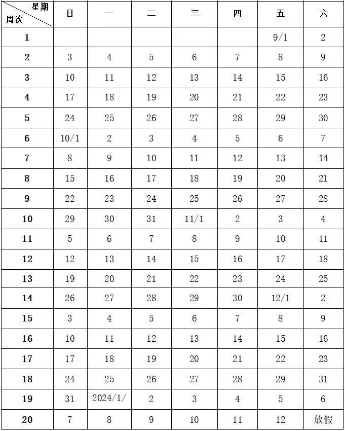 第一學(xué)期校歷