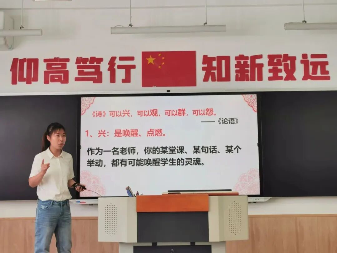 在讀書分享中,語文老師對(duì)《義務(wù)教育語文課程標(biāo)準(zhǔn)(2022年版)》案例式解讀、《余映潮語文教學(xué)設(shè)計(jì)技法80講》、《魯迅的七堂語文課》進(jìn)行讀書心得分享,對(duì)于書中如何把握文章選點(diǎn)突破進(jìn)行深入探討。《好的教育》心得分享中,教師圍繞“以生為本”的教育理念展開,培養(yǎng)學(xué)生的獨(dú)立思考和創(chuàng)造能力,讓學(xué)生在學(xué)習(xí)和成長中感受到快樂和幸福。《論語》一書的分享,同樣引起大家共鳴,傳承中華傳統(tǒng)優(yōu)秀文化,是每一位教師的使命。